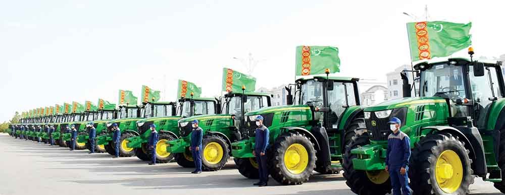 Türkmenistanyň Senagatçylar we telekeçiler birleşmesiniň agzalary döwlet Baştutanymyzyň tagallalary netijesinde alnyp berlen täze tehnikalary uly buýsanç bilen kabul etdiler. Türkmen telekeçileri üçin dünýä ölçeglerine laýyk gelýän «John Deere» kysymly täze traktorlaryň, tirkeg gurallarynyň we derman serişdelerini sepiji enjamlaryň ýurdumyza getirilmegi oba hojalyk işlerini gysga möhletde tamamlamaga amatly şertleri döreder.