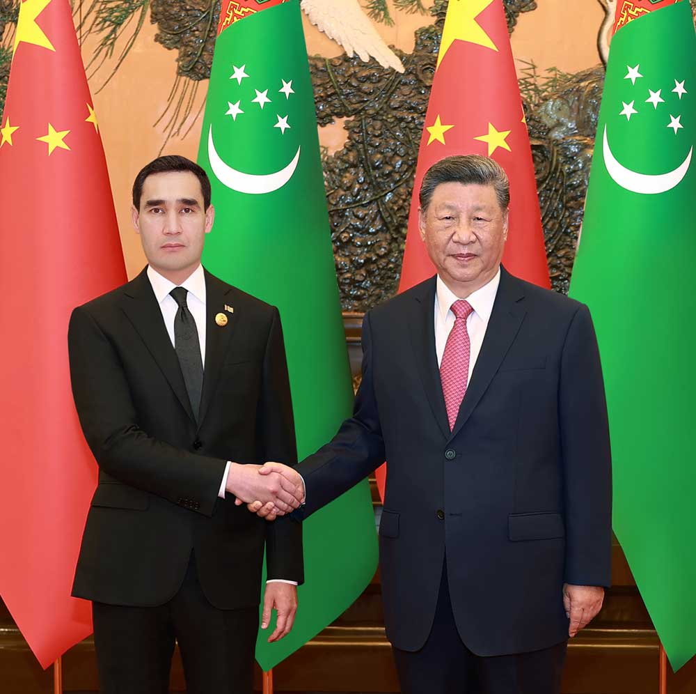 HHR-iň Baştutany belent mertebeli türkmen myhmanyny mähirli mübärekläp, çakylygy kabul edip Hytaýa gelendigi üçin hormatly Prezidentimize hoşallyk bildirdi hem-de pursatdan peýdalanyp, türkmen halkynyň Milli Lideri, Türkmenistanyň Halk Maslahatynyň Başlygy Gahryman Arkadagymyza mähirli salamyny ýetirmegi haýyş etdi. Şeýle-de Si Szinpin Arkadagly Gahryman Serdarymyzy ýakynda “Awaza” milli syýahatçylyk zolagynda BMG-niň Deňze çykalgasy bolmadyk ösüp barýan döwletler boýunça üçünji maslahatynyň üstünlikli geçirilmegi bilen gutlady. Ol “Merkezi Aziýa — Hytaý” formatyndaky sammitiň çäklerinde hormatly Prezidentimiz bilen bolan duşuşygyny ýakymly duýgular bilen ýatlaýandygyny aýdyp, onuň netijeleri boýunça bilelikdäki işleri durmuşa geçirmäge taýýardygyny tassyklady. Başlyk Si Szinpin hemmetaraplaýyn strategik hyzmatdaşlygy ösdürmek boýunça bilelikdäki işleriň möhüm ähmiýetini belläp, HHR-iň ýurdumyzyň hemişelik Bitaraplygyny, Garaşsyzlygyny, özygtyýarlylygyny we çäk bitewüligini goldaýandygyny aýtdy.