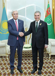 Türkmen halkynyň Milli Lideri, Türkmenistanyň Halk Maslahatynyň Başlygy Gahryman Arkadagymyz Gazagystan Respublikasynyň Prezidenti bilen duşuşdy