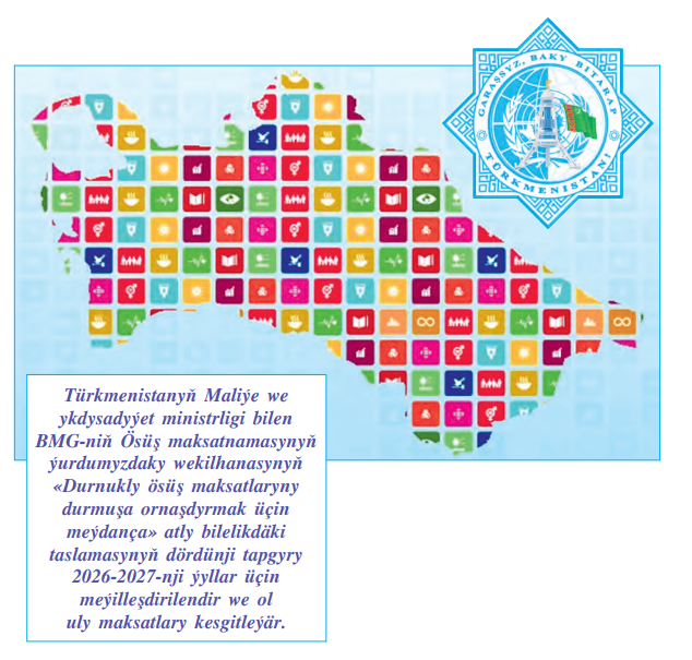 Mälim bolşy ýaly, 2030-njy ýyla çenli durnukly ösüş boýunça Gün tertibi 2015-nji ýylyň 25-nji sentýabrynda Birleşen Milletler Guramasynyň (BMG) Baş Assambleýasynyň durnukly ösüşiň 17 maksadyny öz içine alýan degişli Kararnamasy bilen makullanyldy. BMG-niň ähli agza ýurtlary bu Kararnamany goldadylar. Türkmenistan dünýäde ählumumy maksatlaryň wezipelerini milli şertlerine uýgunlaşdyrmaga başlan ilkinji ýurtlaryň biri boldy. Ýurdumyzda «Gün tertibi — 2030-y» amala aşyrmagyň barşynda ileri tutulýan ugurlaryň ählitaraplaýyn hasaba alynmagyny gazanmak, şeýle hem Durnukly ösüş maksatlarynyň toplumlaýyn we bitewi häsiýetini hasaba almak, durnukly ösüşiň üç böleginiň (ykdysady, durmuş we ekologiýa) ählisiniň deňeçerligini üpjün etmek maksady bilen, milli utgaşdyryjy gural döredildi. Şeýle hem ministrlikleriň we pudaklaýyn dolandyryş edaralarynyň, ýerli häkimiýetleriň, jemgyýetçilik guramalarynyň, ylmy-barlag institutlarynyň, ýokary okuw mekdepleriniň we ýaşlaryň wekillerini öz içine alýan iş topary döredildi. Türkmenistanyň Maliýe we ykdysadyýet ministrligi Durnukly ösüş maksatlaryny durmuşa ornaşdyrmakda umumy utgaşdyrma işini alyp barýar. Statistika baradaky döwlet komiteti bolsa Durnukly ösüş maksatlarynyň milli maglumatlar binýady üçin maglumatlary ýygnamagy amala aşyrýar. Türkmenistan «hiç kimi çetde goýmaly däl» diýen ählumumy borçnamanyň tarapdarydyr. Bu ýörelge durmuş-ykdysady, syýasy we ýaşaýşyň beýleki ugurlarynyň ilata elýeter bolmagyny üpjün etmek boýunça ýurtda alnyp barylýan syýasatyň esasyny düzýär. Ýaşaýşyň hili we derejesi, adamyň hukuklary we borçlary, ykdysady ösüş we daşky gurşawy goramak meseleleri döwletiň durmuş-ykdysady syýasatynyň üns merkezinde durýar. Bu syýasat «Berkarar döwletiň täze eýýamynyň Galkynyşy: Türkmenistany 2022 — 2052- nji ýyllarda durmuş-ykdysady taýdan ösdürmegiň Milli maksatnamasy», «Türkmenistanyň Prezidentiniň ýurdumyzy 2022 — 2028-nji ýyllarda durmuş-ykdysady taýdan ösdürmegiň Maksatnamasy», «Türkmenistanyň Prezidentiniň obalaryň, şäherçeleriň, etraplardaky şäherleriň we etrap merkezleriniň ilatynyň ýaşaýyşdurmuş şertlerini özgertmek boýunça 2028-nji ýyla çenli döwür üçin rejelenen görnüşdäki Milli maksatnamasy» ýaly uzak we orta möhletlere niýetlenen esasy ösüş maksatnamalarynda kesgitlenilýär. BMG-niň Baş Assambleýasy agza döwletlere Durnukly ösüş maksatlaryna ýetmekde öňegidişlige milli we ýerli derejelerde baha bermek bilen bilelikde, yzygiderli hem-de hemme zady öz içine alýan synlary geçirmegi maslahat berýär. Meýletin milli synlar milli şertlere, strategiýalara we ileri tutulýan ugurlara laýyklykda, ýerli ilatyň, raýat jemgyýetiniň, hususy bölegiň we beýleki gyzyklanýan taraplaryň pikirlerini hasaba almak bilen geçirilýär. Türkmenistanyň iki gezek, has anygy, 2019-njy we 2023-nji ýyllarda Durnukly ösüş maksatla rynyň amala aşyrylyşynyň barşy barada Meýletin milli synlary taýýarlap, BMG-niň Nýu-Ýork şäherinde geçirilen ýokary derejeli syýasy forumynyň meýdançasynda hödürlemegi bu ugurda bilelikdäki işleriň anyk netijeleri boldy. «Durnukly ösüş maksatlaryny durmuşa ornaşdyrmak üçin meýdança» atly bilelikdäki taslamanyň öňki üç tapgyrynyň çäginde Türkmenistanyň Statistika baradaky döwlet komitetinde DÖM-nüň görkezijileri boýunça hasabatlylygyň milli platformasy döredilip, häzirki wagtda ol onlaýn görnüşde hereket edýär. «Gün tertibi — 2030-a» ýetmekdäki öňegidişligiň ýyllyk milli synlary, olaryň Türkmenistanda durmuşa ornaşdyrylmagy boýunça ýyllyk Milli hasabatlar hem taýýarlanyldy. DÖM-nüň wezipeleriniň milli maksatnamalara, strategiýalara we meýilnamalara ornaşdyrylyşy babatynda BMG-niň Ösüş maksatnamasynyň usulyýeti boýunça Çalt toplumlaýyn bahalandyrmalar we Maliýeleşdirmegiň toplumlaýyn milli mehanizmini (MTMM) ornaşdyrmagyň çäklerinde Ösüşi maliýeleşdirmäge baha bermek geçirildi. Bilelikdäki hyzmatdaşlygyň ýene-de bir netijesi Türkmenistanyň Bütindünýä Söwda Guramasyna (BSG) goşulmagy we kanunçylygynyň BSG-niň talaplaryna laýyk gelmegi üçin hereketleriň meýilnamalary bilen baglanyşykly «Ýol kartasynyň» taýýarlanylmagydyr. Türkmenistanyň Bütindünýä Söwda Guramasyna goşulmagy bilen bagly meselelere taýýarlyk görmek we kanunçylygy BSG-niň talaplaryna laýyk getirmek maksady bilen, «2022 — 2025-nji ýyllar üçin «Ýol kartasy», ondaky çäreleri ýerine ýetirmek boýunça degişli meýilnamanyň taslamasy işlenip taýýarlanyldy. Gürrüňi edilýän taslamanyň dördünji tapgyry 2026-2027-nji ýyllar üçin meýilleşdirilendir we ol uly maksatlary kesgitleýär. Olaryň arasynda Türkmenistanyň üçünji Meýletin milli synyny taýýarlamak hemde Durnukly ösüş maksatlaryny sebitleşdirmek (ýerli derejede ornaşdyrmak) meseleleri boýunça milli mümkinçiligi pugtalandyrmak wezipeleri hem bar. Şeýle-de ýurdumyzyň sebitleriniň biriniň mysalynda Ýerli meýletin syny taýýarlamak meýilleşdirilýär.